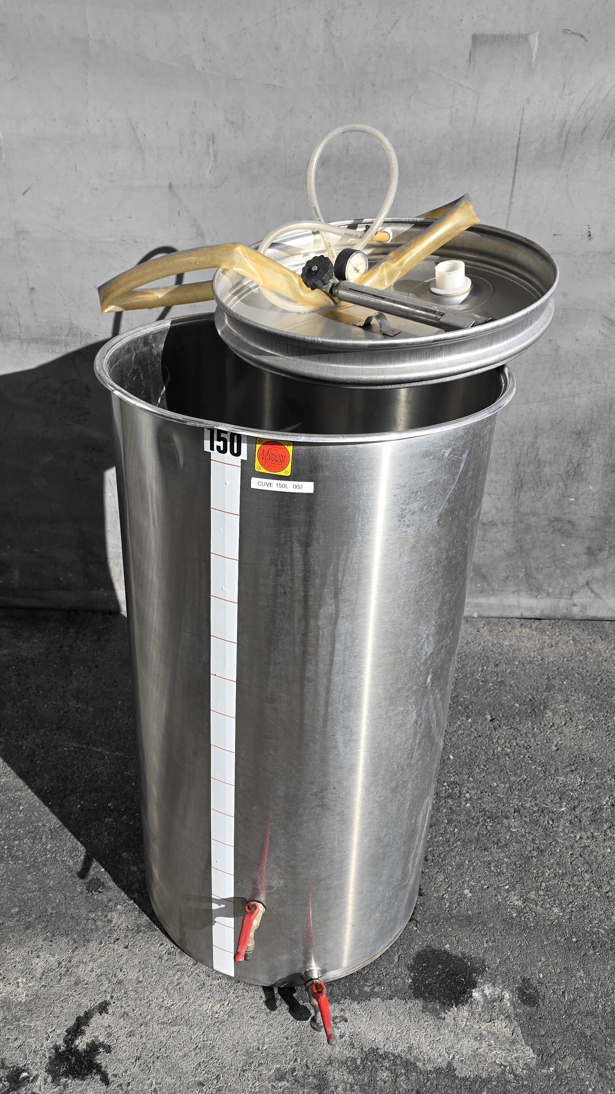 Cuve de 150L, chapeau flottant, lisse, un dégustateur et une vanne.