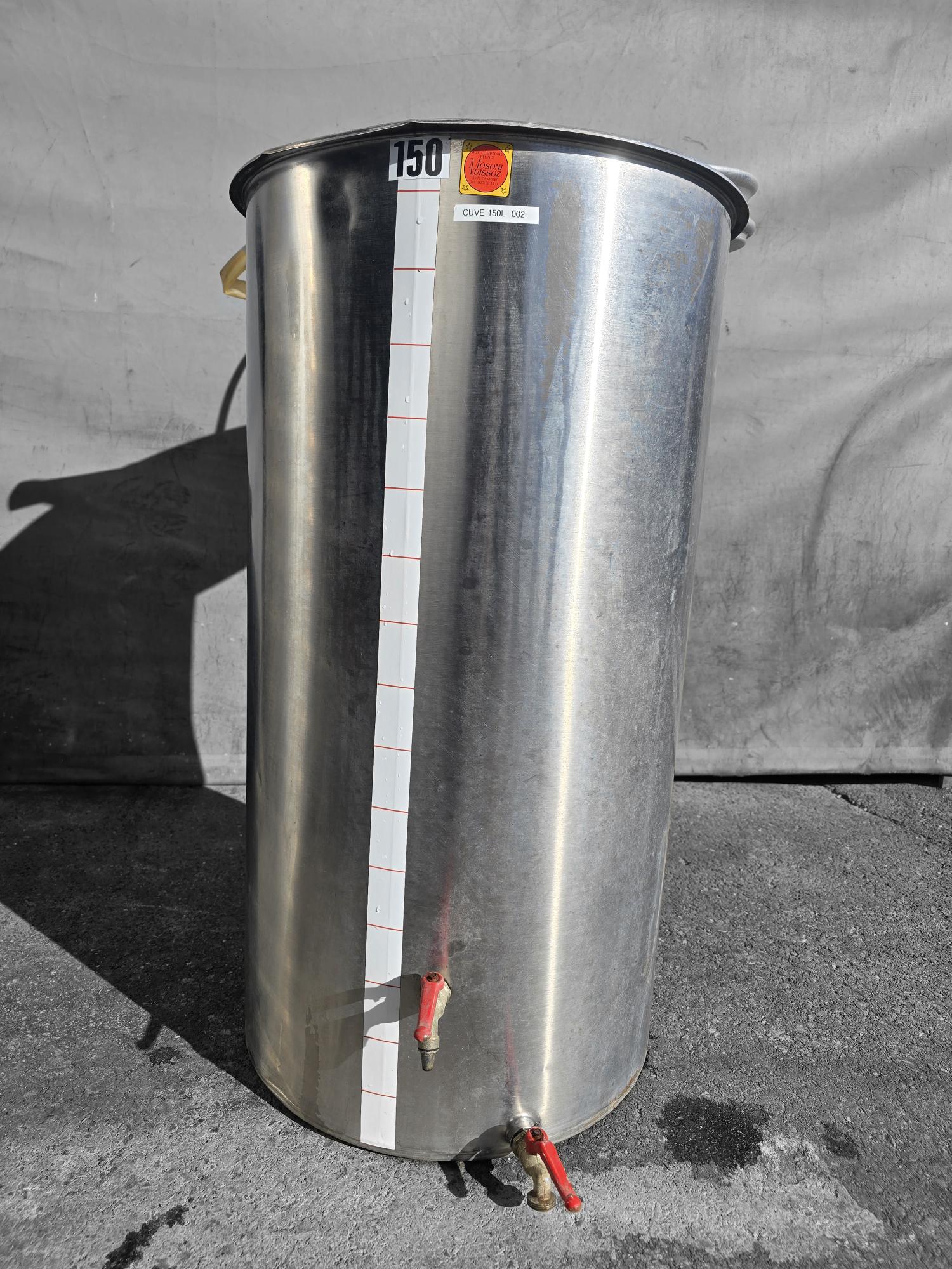 Cuve de 150L, chapeau flottant, lisse, un dégustateur et une vanne.