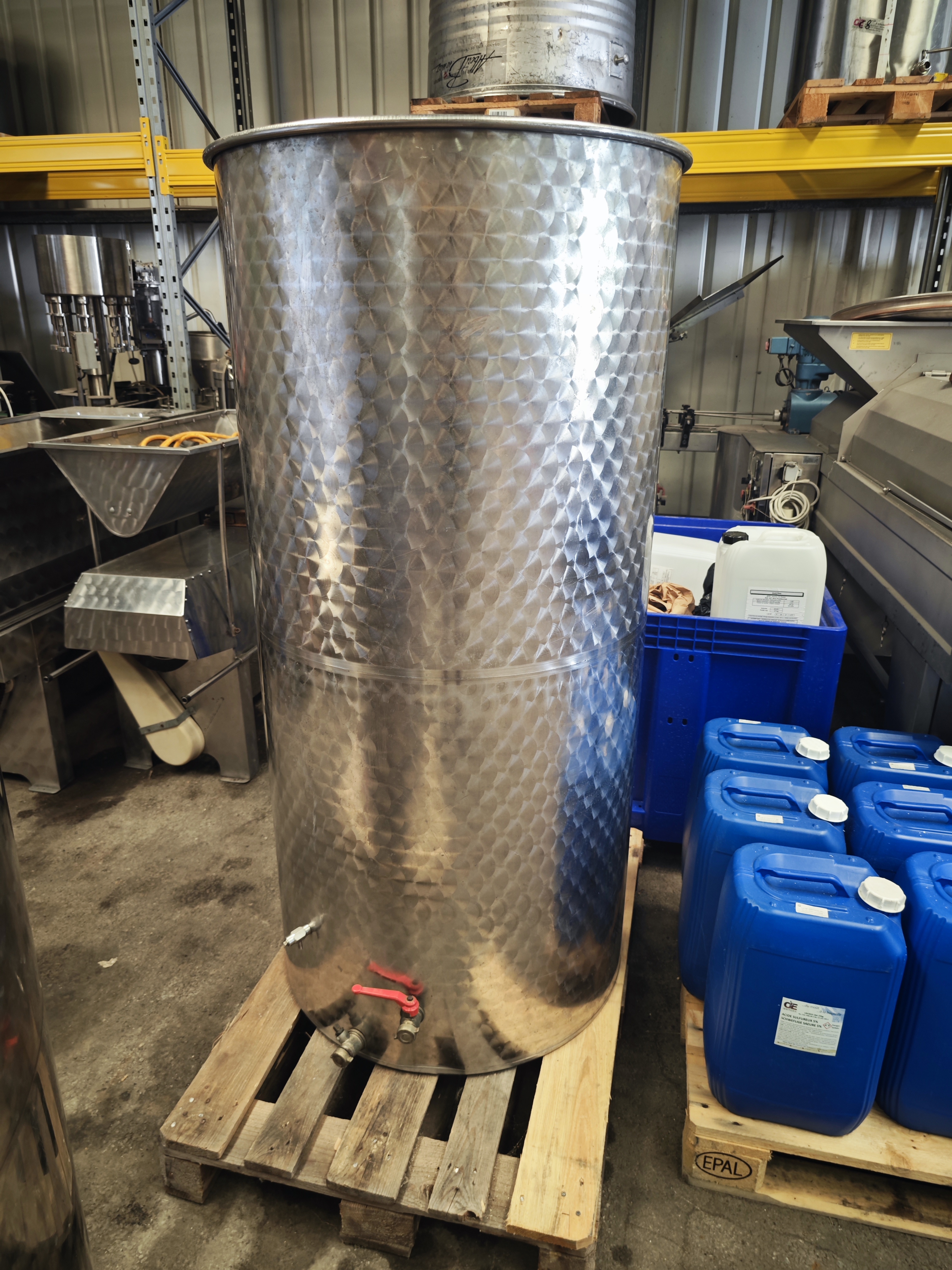 Cuve C10, 800L, bouchonnée, ronde, 2 vannes un pouce et un dégustateur.